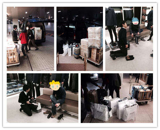 看我们的行李,你就知道到底买了多少东西了。回大阪的时候,行李和我们混杂在一起,这我才知道为什么一行5人要8人座的大面包车了。是不是一去奥特莱斯大家都Hold不住了,都大买特买呢?!