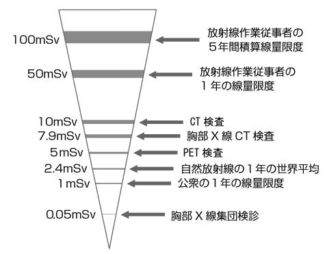 用于医疗的放射线值都会被控制在安全的范围内,其实正常人在接受一次CT扫描所接受的辐射量还到不到每天看电视一小时看一年所受到的辐射剂量大。以做PET-CT为例,如下图所示,辐射量大约为10mSv,除了对怀孕中的胎儿会有影响之外,对于正常人来说,接受的辐射量是完全在安全范围之内的。比起接受癌症早期筛查所带给大家的安心感,接受这点微小的辐射对身体不会造成什么伤害,这点是完全不需要担心的。