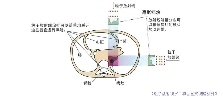 质子治疗是放射线治疗的一种。肿瘤治疗中使用的放射线大体上分为光子线和粒子线。传统放射线治疗中所使用的X射线和伽马射线称为光子线。而质子线是把氢原子中的电子剥离,将原子核加速至高速形成的放射线,属于粒子放射线的一种。质子(粒子)放射线治疗的特征是当放射线达到一定深度时可以释放出最大能量(布拉格峰)。只要将放射线的最大能量位置调整到癌肿病灶上就可以集中照射患处而不会过多损伤正常细胞。